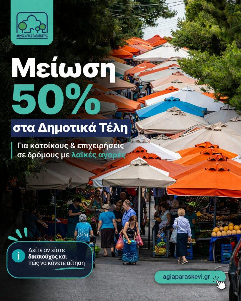 Αγία Παρασκευή: Μείωση 50% των δημοτικών τελών σε δρόμους με λαϊκές αγορές