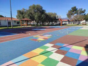 Συγκεκριμένα, έγιναν εργασίες ανακατασκευής γηπέδων μπάσκετ, βόλεϊ και ποδοσφαίρου και επεξεργασία των ασφαλτοστρωμένων επιφανειών στις αυλές σχολικών μονάδων. Επίσης, έγινε αλλαγή φθαρμένων μπασκετών, ορθοστατών βόλεϊ και τερμάτων ποδοσφαίρου.