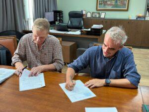 Ο Δήμαρχος Μυτιλήνης, Παναγιώτης Χριστόφας, και ο εκπρόσωπος των αναδόχων μελετητών υπέγραψαν τη σύμβαση για την εκπόνηση της μελέτης βελτίωσης και εκσυγχρονισμού του αρδευτικού δικτύου Θερμής, παρουσία του αρμόδιου Αντιδημάρχου Περιβάλλοντος και Δ.Ε. Λουτρόπολης Θερμής Χρήστου Τσιβγούλη και στελεχών των Υπηρεσιών του Δήμου.