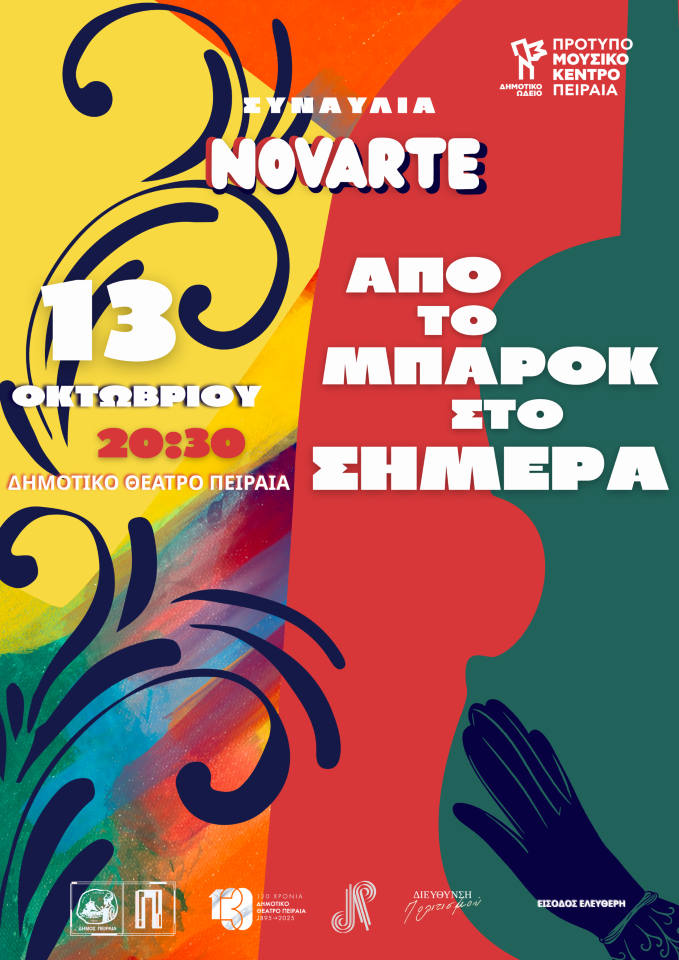 Το κουαρτέτο Novarte παρουσιάζει τη Δευτέρα 13 Οκτωβρίου, στις 20:30, έργα μουσικής μπαρόκ, με ελεύθερη είσοδο για το κοινό, στο φουαγιέ του Δημοτικού Θεάτρου Πειραιά.