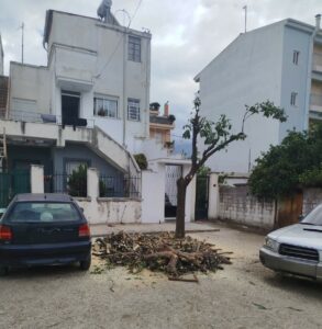 Το τμήμα Πρασίνου κατέγραψε πινακίδα αγροτικού οχήματος που μετέφερε ξύλα από κομμένα δέντρα στην πλατεία Ελευθερίας. Στη συνέχεια η Προϊσταμένη του Τμήματος Πρασίνου προσήλθε στο Β’ Α.Τ. και υπέβαλε μήνυση κατά αγνώστων.