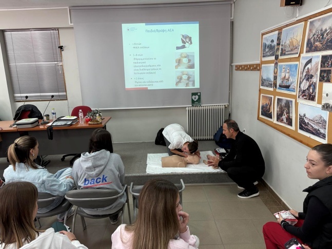 Η αρχή του προγράμματος έγινε στο ΕΠΑΛ Καλαμπάκας, όπου οι μαθητές της Γ’ Λυκείου είχαν την ευκαιρία να εκπαιδευτούν και να ενημερωθούν από πιστοποιημένους εκπαιδευτές σχετικά με βασικές δεξιότητες πρώτων βοηθειών και χρήσιμες πληροφορίες για την αντιμετώπιση έκτακτων περιστατικών.