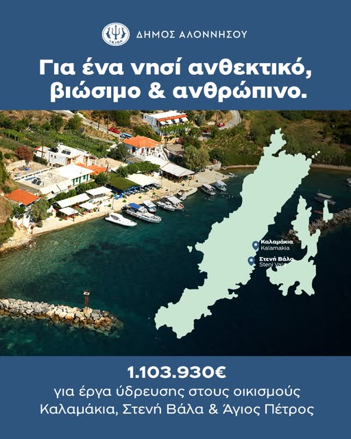 Ο Δήμος Αλοννήσου συνεχίζει με σχέδιο, προγραμματισμό και επιμονή να αξιοποιεί κάθε διαθέσιμο χρηματοδοτικό εργαλείο για τη βελτίωση της ποιότητας ζωής των κατοίκων του.