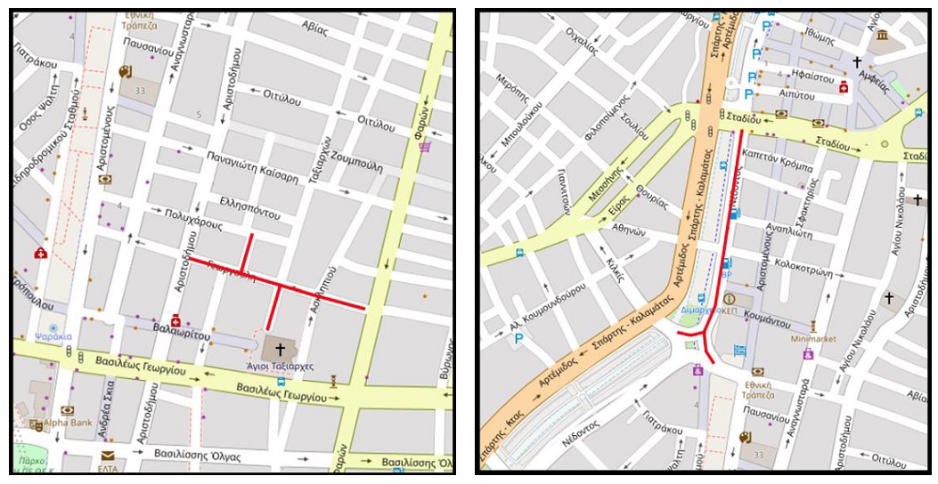 Στη Γραμμή 1 του αστικού λεωφορείου, το δρομολόγιο με κατεύθυνση προς παραλία θα διέρχεται μέσω των οδών Αρτέμιδος – Κλαδά – Νέδοντος – Κροντήρη – Αριστομένους.