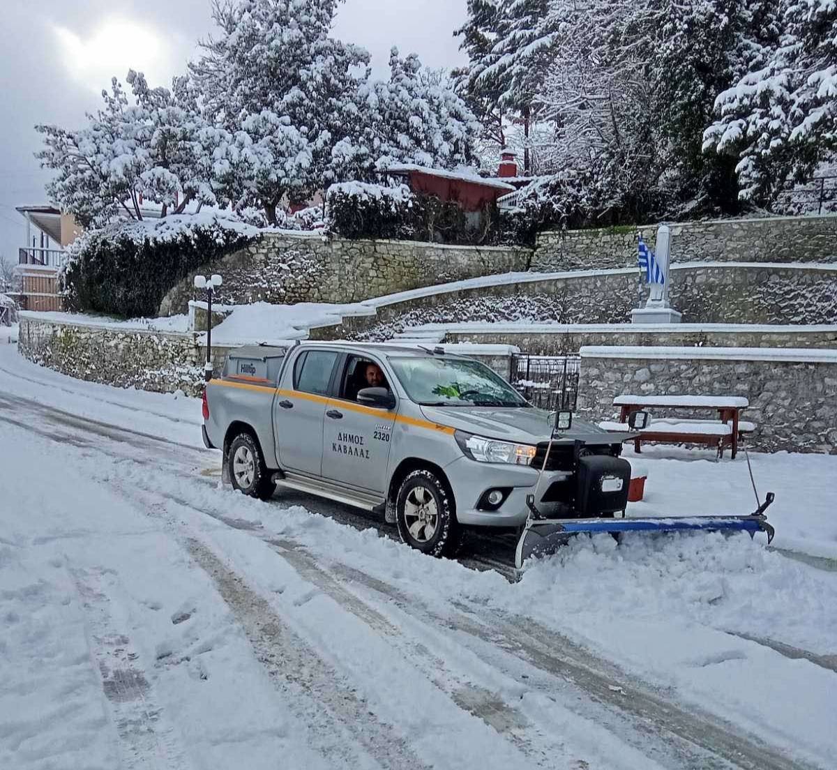 Οι εργαζόμενοι του Δήμου Καβάλας, υπό την επίβλεψη του Αντιδημάρχου Πράσινου και Πολιτικής Προστασίας, Κυριάκου Σταυρίδη, φροντίζουν σε σταθερή βάση από το πρωί της Κυριακής, για τον αποχιονισμό των κεντρικών δρόμων του ορεινού όγκου της δημοτικής ενότητας Φιλίππων.