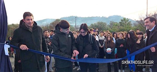 Τα παιδιά εγκαινίασαν το έργο στο Δημοτικό Γήπεδο Σκιάθου “Γεώργιος Α. Σαρρής”.