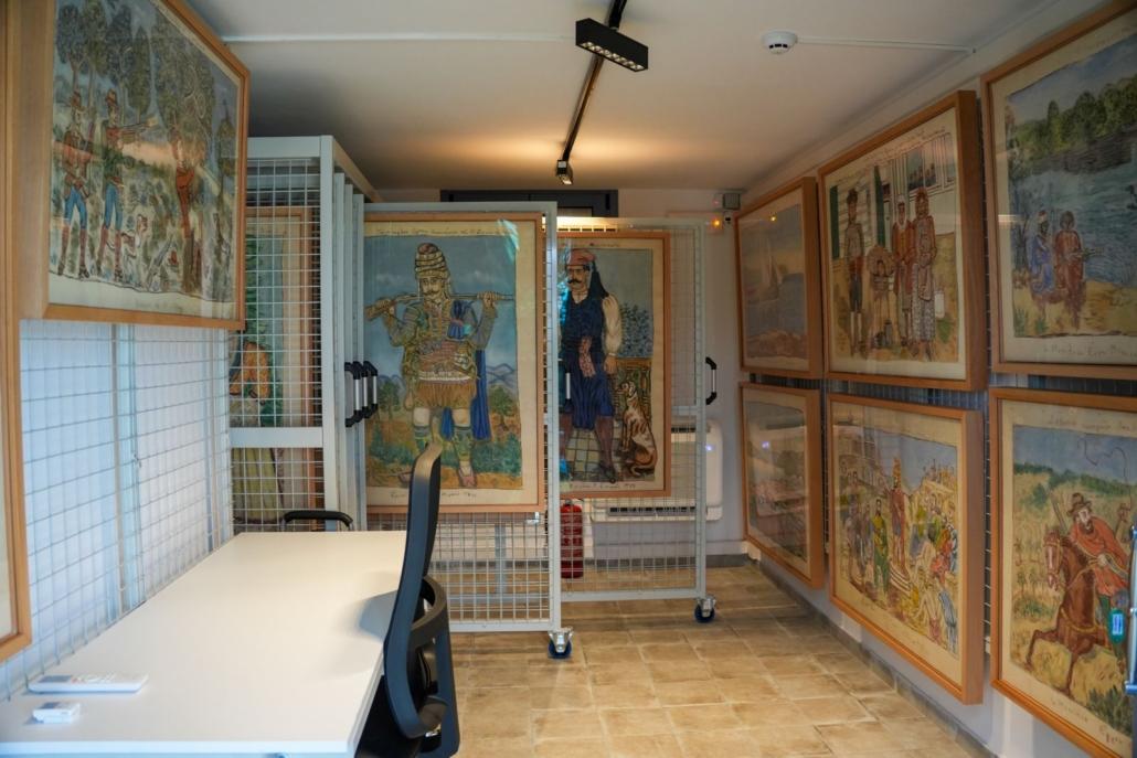 Στη συνέχεια, το έργο ανατέθηκε σε εξειδικευμένη εταιρεία κατασκευής συστημάτων αποθήκευσης. Η συντηρήτρια της Υπηρεσίας του Υπουργείου, σε συνεργασία με υπαλλήλους του Τμήματος Πολιτισμού του Δήμου, προχώρησαν στη μεταφορά και τοποθέτηση 32 έργων στο νέο αποθηκευτικό χώρο. Παράλληλα, πραγματοποιήθηκε ρύθμιση των περιβαλλοντικών παραμέτρων, ώστε να διασφαλιστούν οι κατάλληλες συνθήκες για τη μακροχρόνια προστασία της συλλογής.