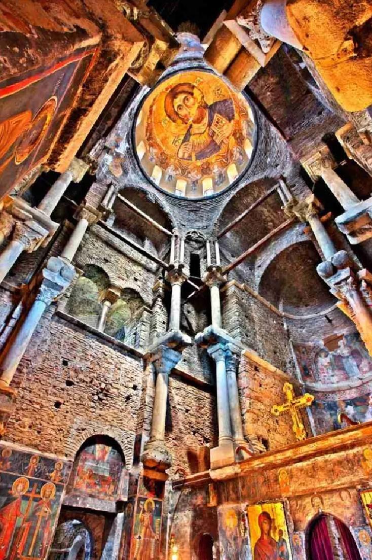 Άποψη του εσωτερικού και του τρούλου του κυρίως Ναού της Παρηγορήτισσας