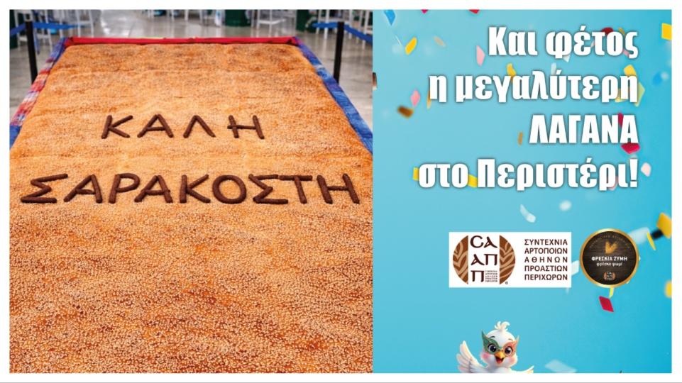Μετά τη μεγαλύτερη βασιλόπιτα της χώρας, ο δήμος Περιστερίου σχεδιάζει να κάνει ρεκόρ και με τη μεγαλύτερη λαγάνα «που έχει παρασκευαστεί ποτέ» και να τη διανείμει στους κατοίκους που θα μετέχουν στις εκδηλώσεις της Καθαρής Δευτέρας.