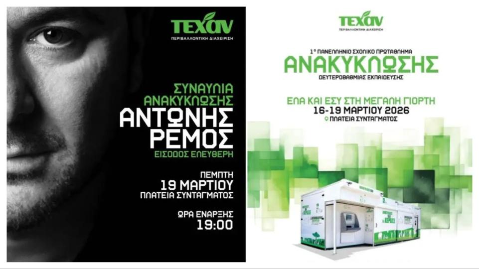 Η μεγάλη γιορτή ολοκληρώνεται την Πέμπτη 19 Μαρτίου, με τον Αντώνη Ρέμο να δίνει «Συναυλία Ανακύκλωσης» στην Πλατεία Συντάγματος.