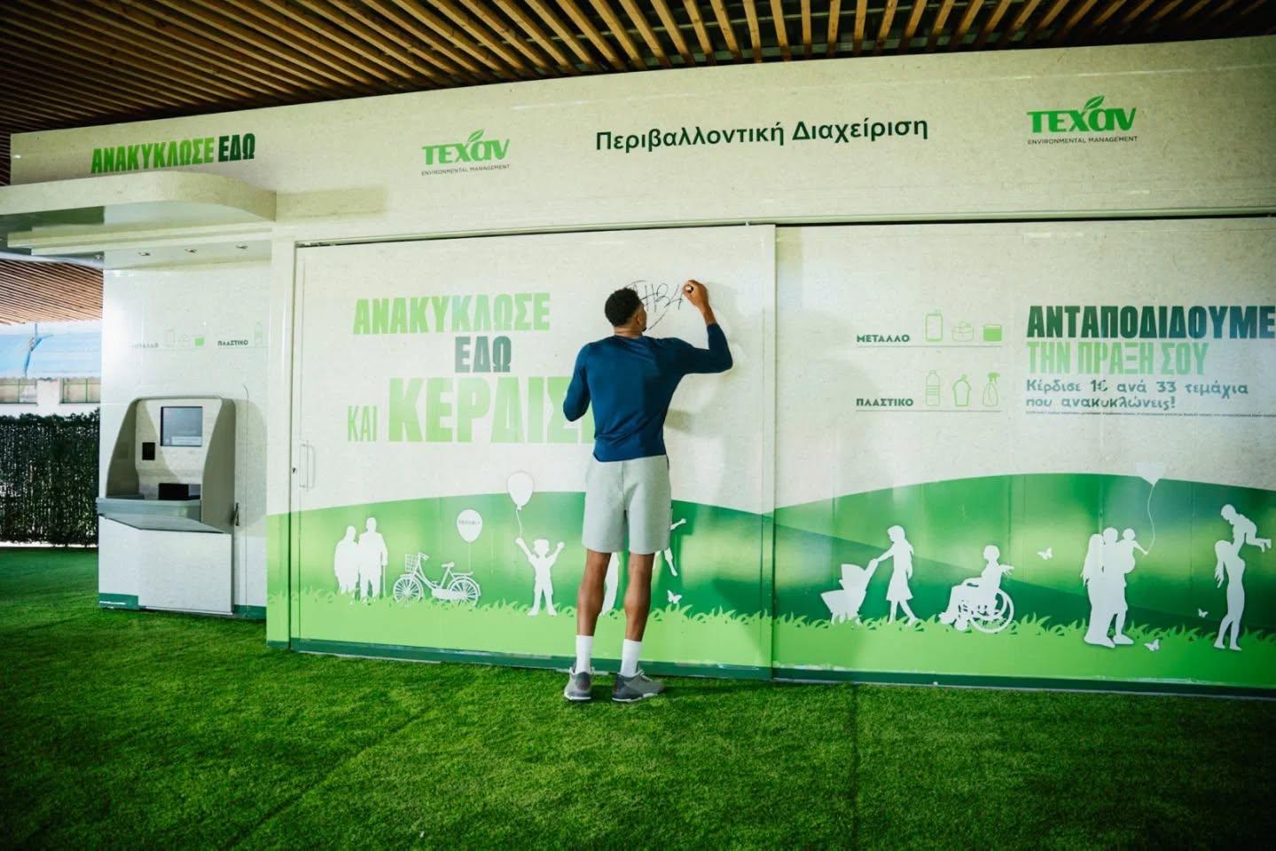 Ισχυρό μήνυμα υπέρ της προστασίας του περιβάλλοντος στέλνει ο Γιάννης Αντετοκούνμπο , ο οποίος συμμετείχε σε δράση ανακύκλωσης της εταιρείας TEXAN S.A., αφήνοντας το αποτύπωμά του – κυριολεκτικά και συμβολικά – σε ένα από τα Πολυκέντρα Ανακύκλωσης της εταιρείας.