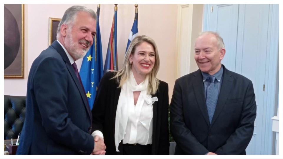 Συγκεκριμένα, ο δήμαρχος Κεντρικής Κέρκυρας και Διαποντίων Νήσων Στέφανος Πουλημένος υποδέχθηκε στο Μαράσλειο Μέγαρο, την Υφυπουργό Εργασίας και Κοινωνικής Ασφάλισης, στο πλαίσιο της επίσκεψής της στο νησί και των επαφών της με τοπικούς φορείς.