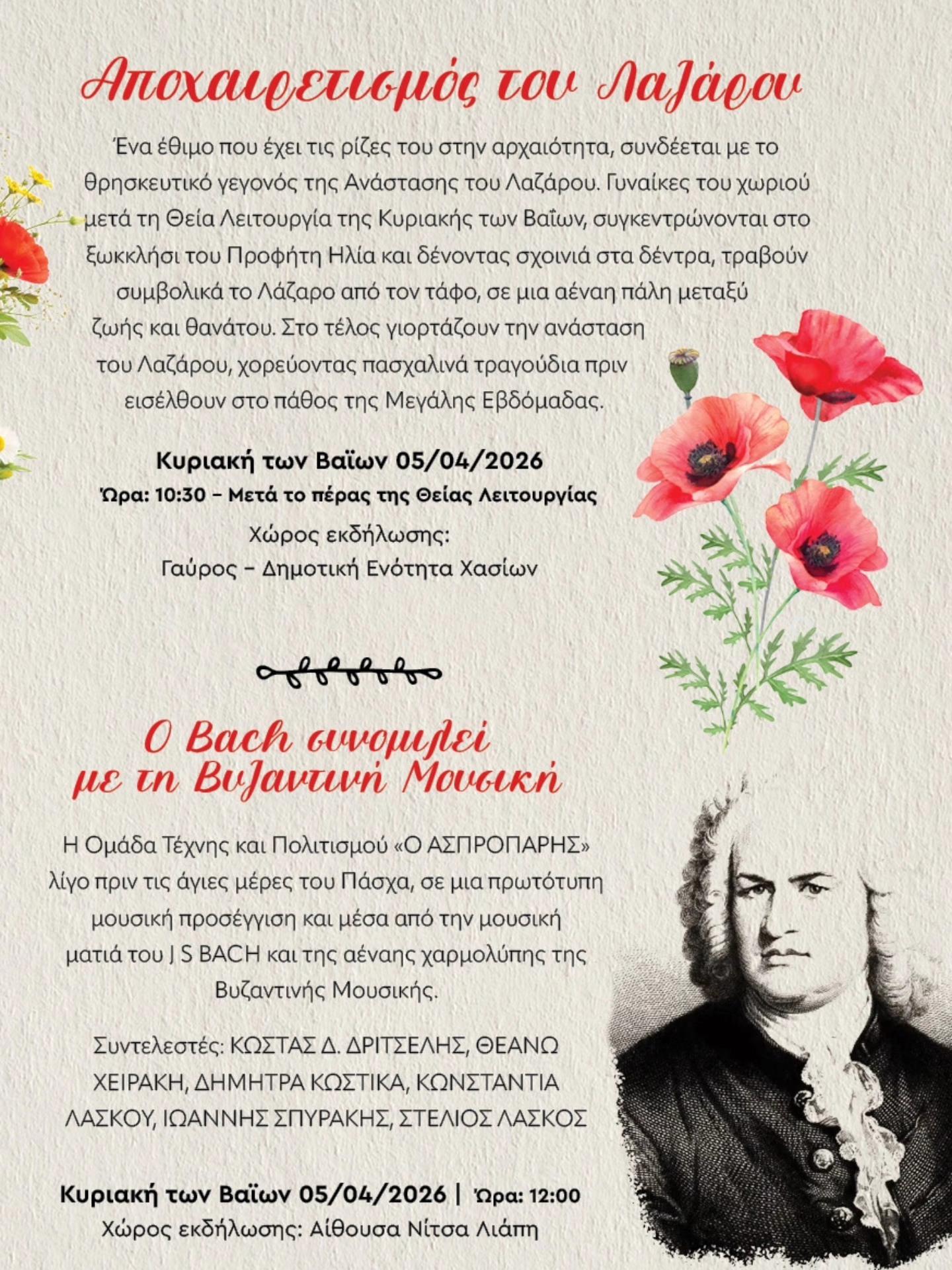 • την αναβίωση παραδοσιακών εθίμων, όπως οι «Λαζαρίνες»