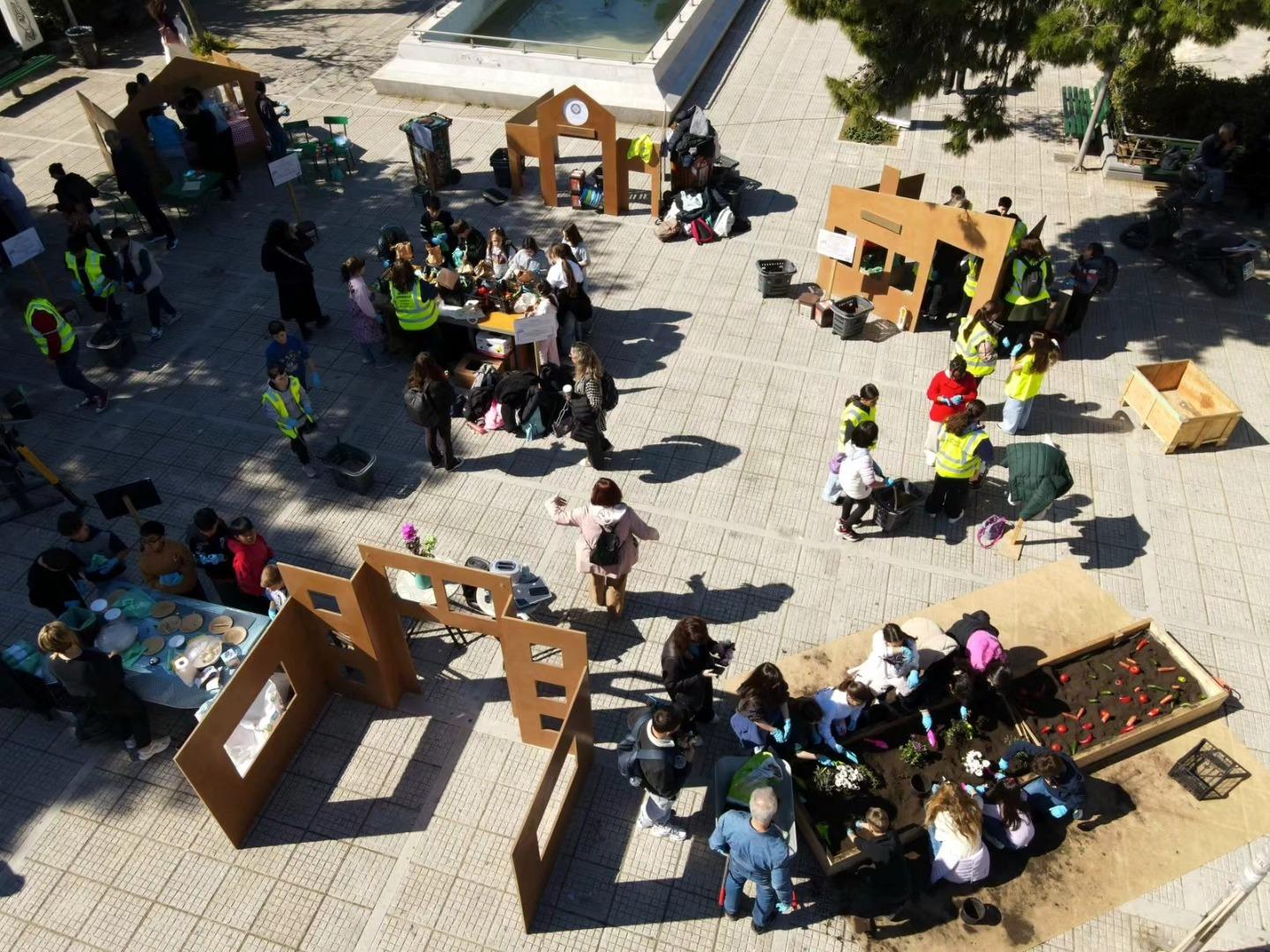 Εκατόν εβδομήντα μαθητές δημοτικών σχολείων της Αθήνας συμμετείχαν σε μια ξεχωριστή βιωματική δράση στην πλατεία Αγίου Θωμά, στο Γουδή, με αφορμή τη Διεθνή Ημέρα Μηδενικών Αποβλήτων.