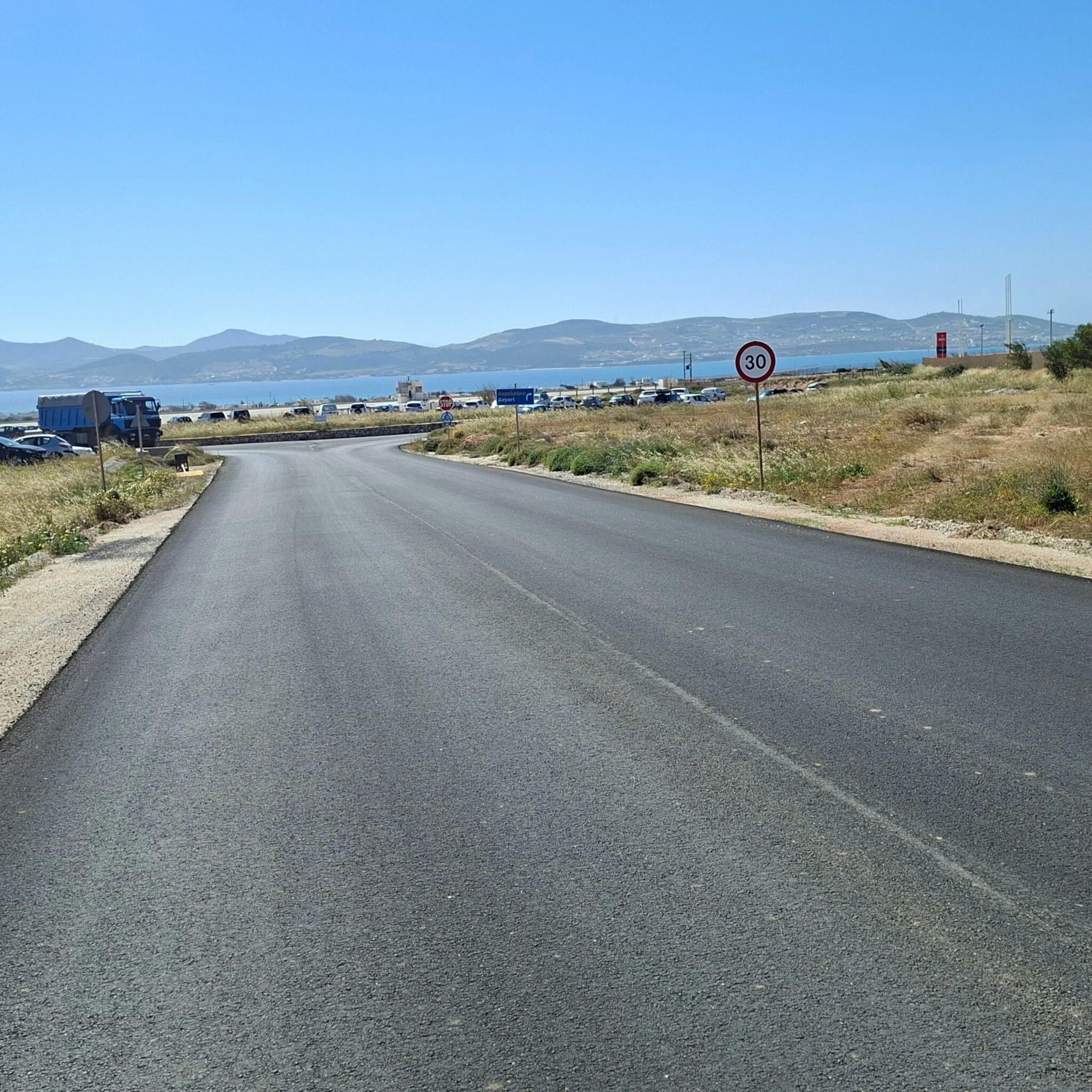 Ολοκληρώθηκε η ασφαλτόστρωση του οδικού τμήματος μήκους περίπου 1.000μ. που συνδέει το επαρχιακό οδικό δίκτυο με τον κόμβο του αεροδρομίου, στο πλαίσιο της εργολαβίας των ασφαλτικών έργων του Δήμου Πάρου.