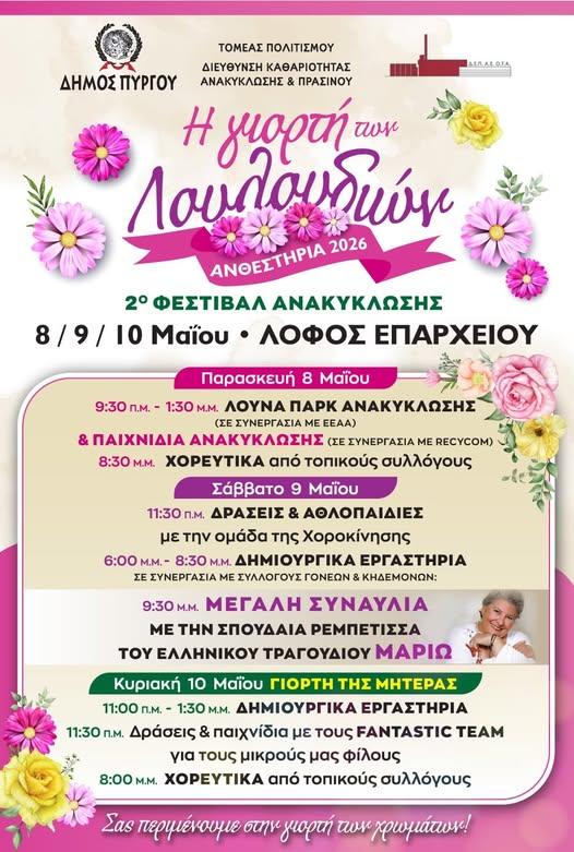 Ανθεστήρια 2026» και «2ο Φεστιβάλ Ανακύκλωσης» στον Δήμο Πύργου.