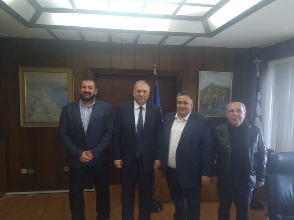 Τέλος, ο Υπουργός Εσωτερικών συναντήθηκε με τον δήμαρχο Ρεθύμνου και πρόεδρο της Ένωσης Δημοτικών Επιχειρήσεων Ύδρευσης και Αποχέτευσης κ. Γιώργη Μαρινάκη με τον οποίο συζήτησαν θέματα που απασχολούν το Δήμο.