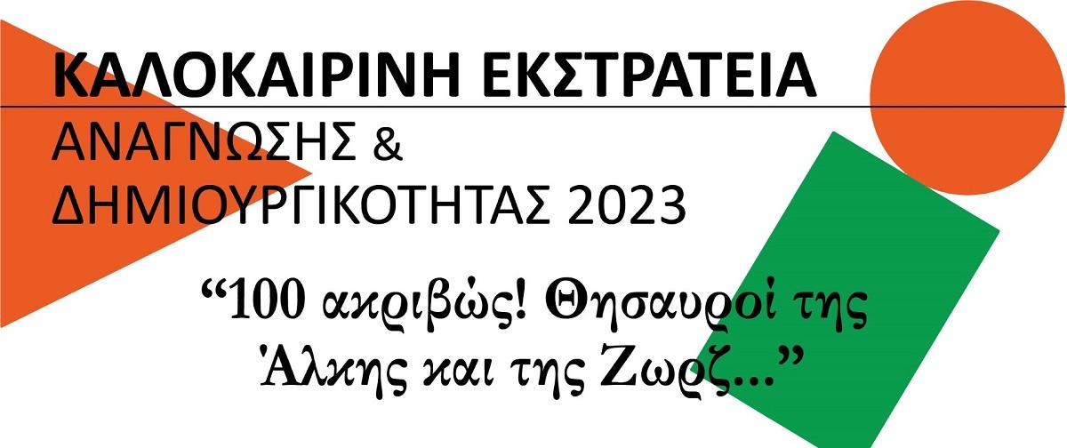 Η Καλοκαιρινή Εκστρατεία Ανάγνωσης και Δημιουργικότητας 2023 διοργανώνεται από την Εθνική Βιβλιοθήκη της Ελλάδος και υλοποιείται χάρη στην αγαστή συνεργασία της ΕΒΕ και του ΕΚΠΑ και συγκεκριμένα του Εργαστηρίου Παιδαγωγικών  Εφαρμογών  και  Παραγωγής  Εκπαιδευτικού  Υλικού.