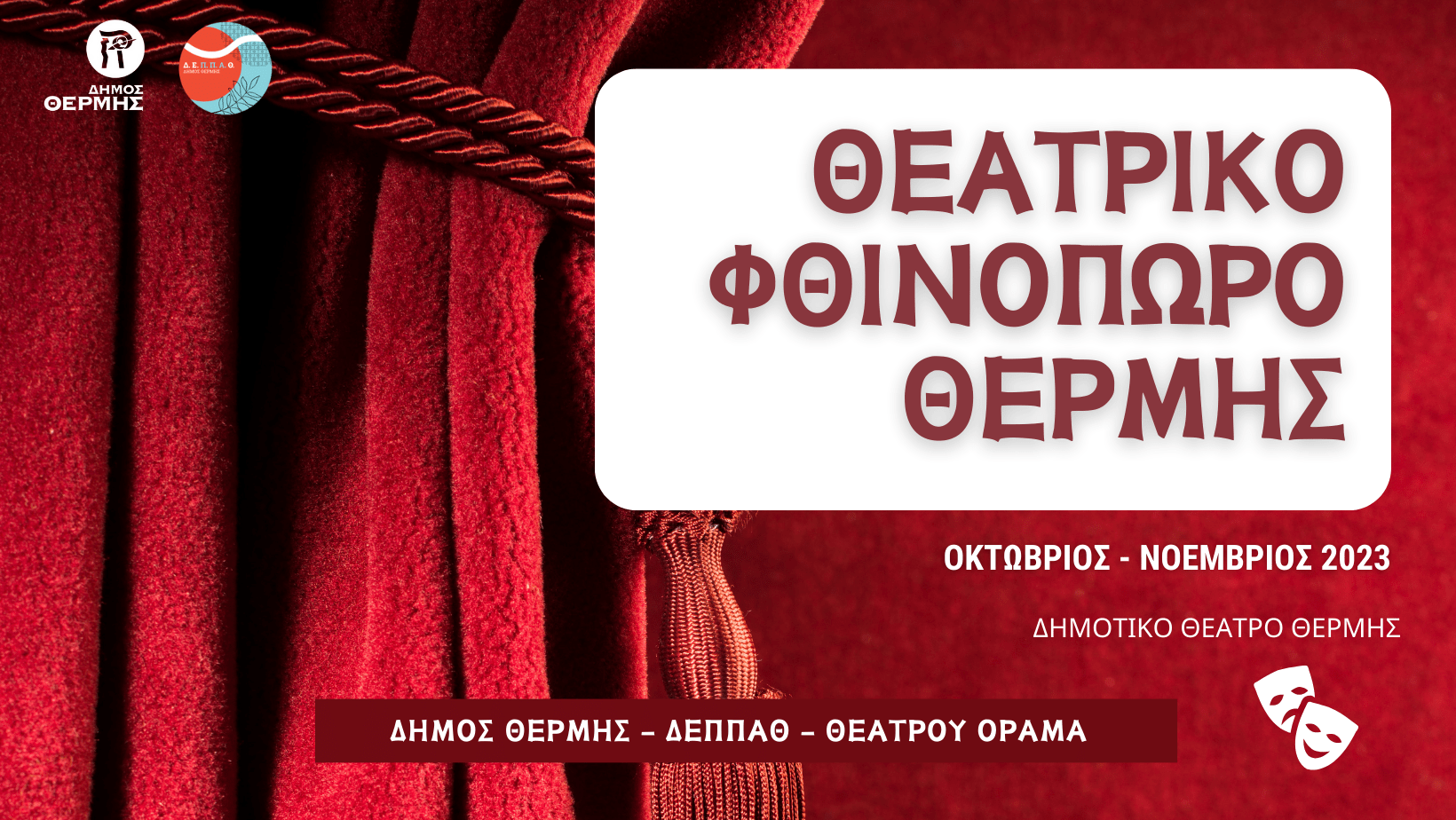 Τα φώτα της Θέρμης άναψαν, οι αυλαίες σηκώθηκαν και ένα πλούσιο Θεατρικό Φθινόπωρο, περιμένει όλους τους δημότες Θέρμης, με βασικό σκοπό να τους φέρει σε επικοινωνία με μια μεγάλη θεατρική συνάντηση. Η γιορτή του Θεάτρου στο Δήμο Θέρμης θα περιλαμβάνει παραστάσεις και παραγωγές των ομάδων θεάτρου της Δημοτικής Επιχείρησης Πολιτισμού Περιβάλλοντος Αθλητισμού (Δ.Ε.Π.Π.Α.Θ).