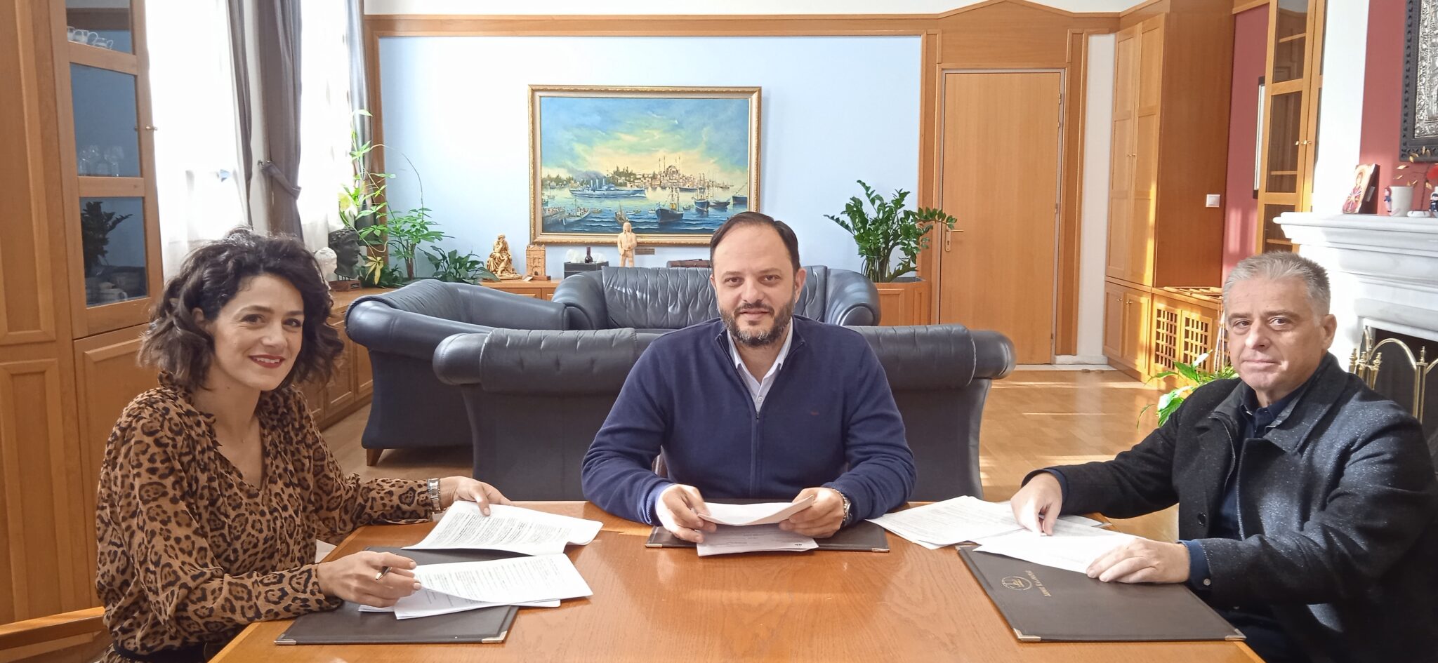 Υπογράφηκε μεταξύ του Δημάρχου Καλαμαριάς, Γιάννη Δαρδαμανέλη, της Αντιδημάρχου Τεχνικών Υπηρεσιών, Ναταλίας Παντελίδου και του εκπροσώπου της αναδόχου εταιρίας Μ&Κ Τεχνικά Έργα Α.Ε, η σύμβαση για το έργο «Αστικές Αναπλάσεις Πράσινων Διαδρομών στον Δήμο Καλαμαριάς».