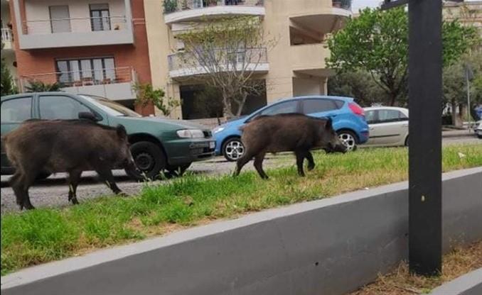 Δύο αγριογούρουνα έκαναν την εμφάνισή τους νωρίς το πρωί στον Άγιο Ιωάννη Καλαμαριάς, επί της οδού Παπατσεχιλίδη, αναζητώντας για τροφή μέσα στο κρύο.