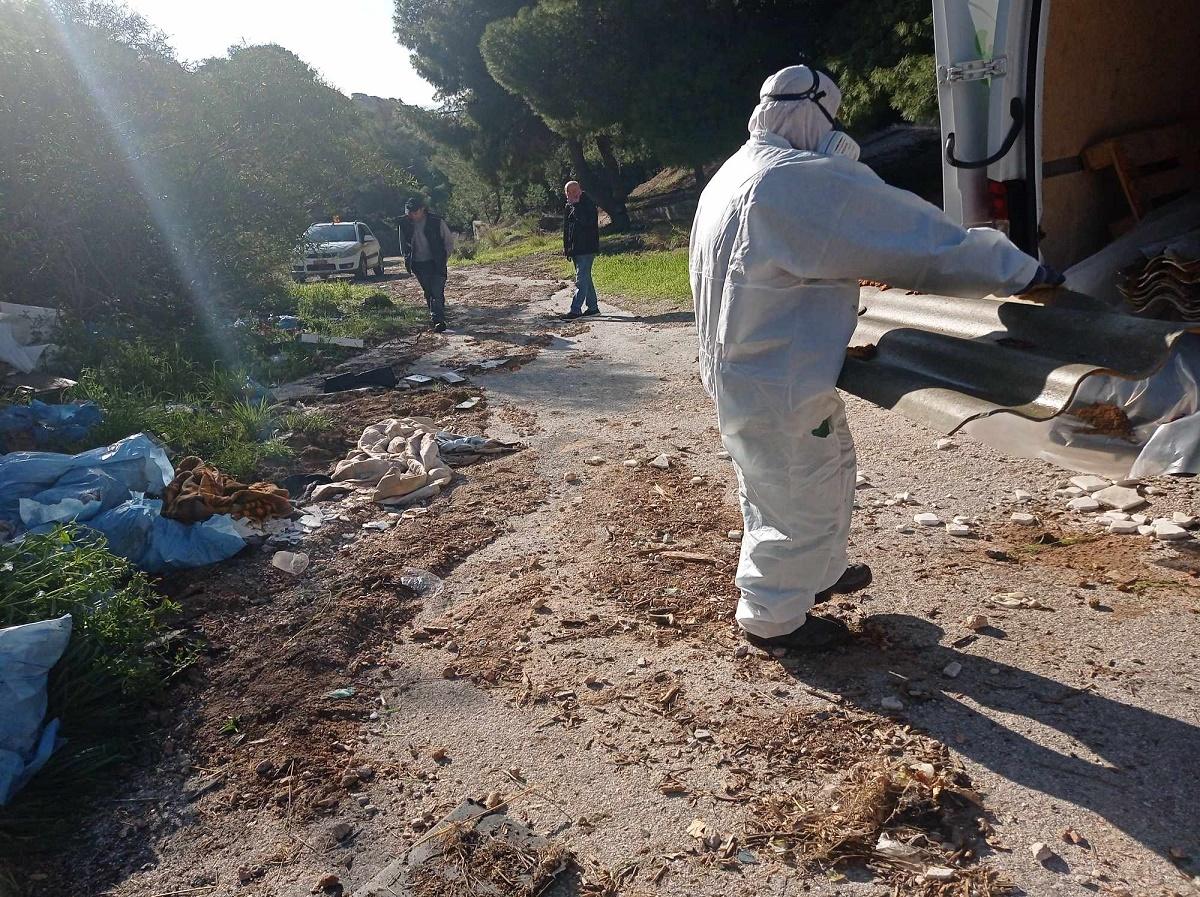 Τονίζουμε πως η αφαίρεση, η μεταφορά και η απόρριψη επικίνδυνων και τοξικών υλικών, ΑΠΑΓΟΡΕΥΕΤΑΙ και οι παραβάτες δύναται να συλληφθούν και να οδηγηθούν στον Εισαγγελέα. Όσοι έχουν εντοπιστεί, σε συνεργασία με το τοπικό Α.Τ., έχουν παραπεμφθεί.