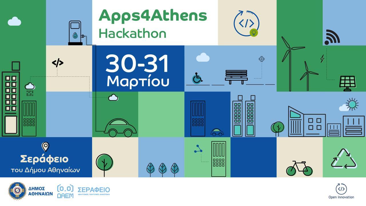 Κατά τη διάρκεια του ΜαραθωνίουΚαινοτομίας Apps4Athens Hackathon, που θα διεξαχθεί στις 30 και 31 Μαρτίου, στο Σεράφειο του Δήμου Αθηναίων, οι συμμετέχοντες θα έχουν την ευκαιρία να αναπτύξουν και να παρουσιάσουν προτάσεις και εφαρμογές, οι οποίες θα ενισχύσουν την ψηφιακή παρουσία της Αθήνας, επιλύοντας προβλήματα και βελτιώνοντας την ποιότητα ζωής των πολιτών.