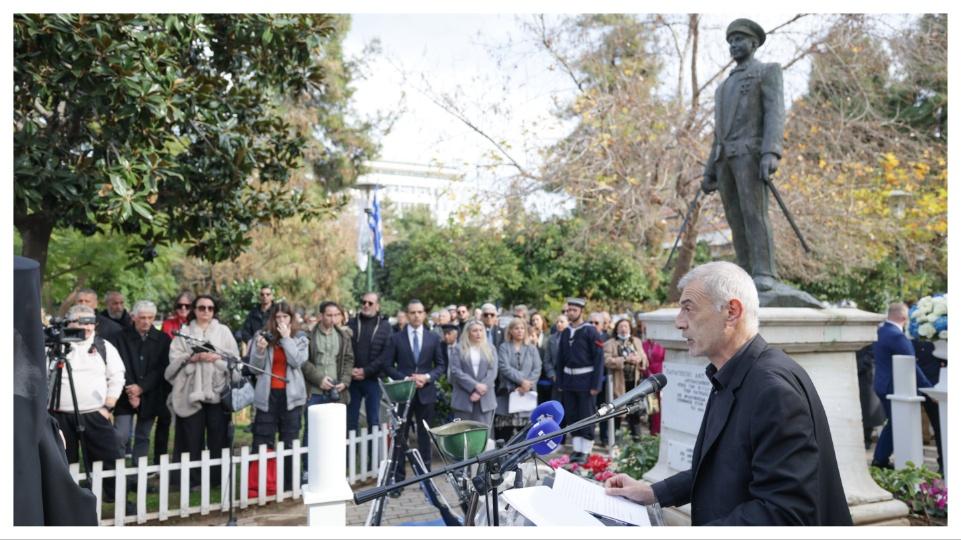 Βρισκόμαστε εδώ, 29 χρόνια μετά, προκειμένου να τιμήσουμε τη μνήμη των τριών ηρώων μας, των Αντιναυάρχων Παναγιώτη Βλαχάκου και Χριστόδουλου Καραθανάση και του Πλοιάρχου Έκτορα Γιαλοψού ΠΝ. Βρισκόμαστε εδώ για να αποτίσουμε τον ελάχιστο φόρο τιμής στους τρεις αυτούς Αξιωματικούς μας, οι οποίοι, συνειδητά, έδωσαν στην Πατρίδα το μέγιστο αγαθό, τη ζωή τους. Βρισκόμαστε εδώ και οφείλουμε να βρισκόμαστε εδώ, προκειμένου να υπενθυμίσουμε στους εαυτούς μας, αλλά κυρίως στις νέες γενιές, ότι στον σύγχρονο παγκοσμιοποιημένο κόσμο, εξακολουθούν να αποτελούν ανώτατες ηθικές αξίες η φιλοπατρία, η αυταπάρνηση και η διάθεση για προσφορά στην Πατρίδα και στην κοινωνία.