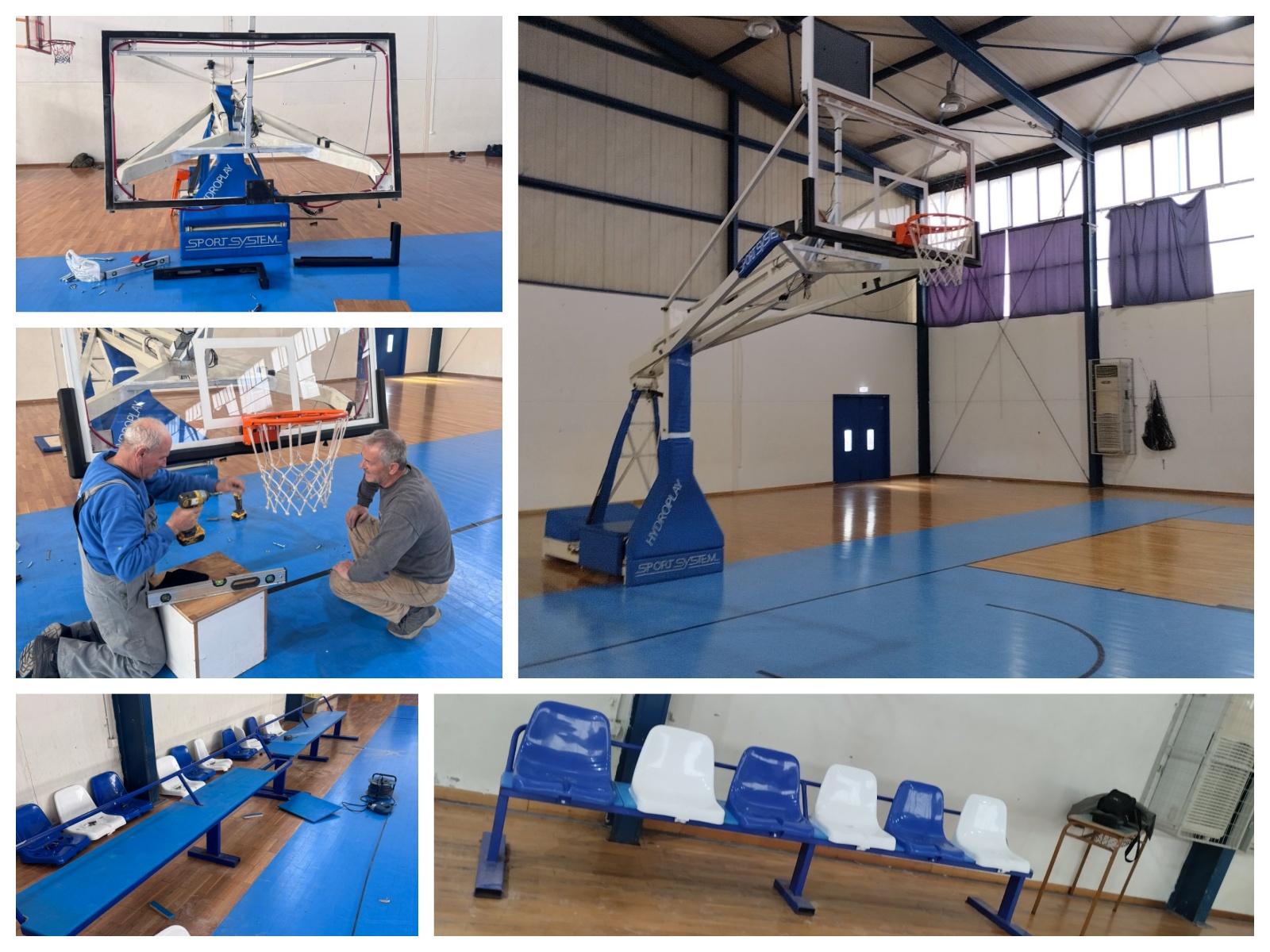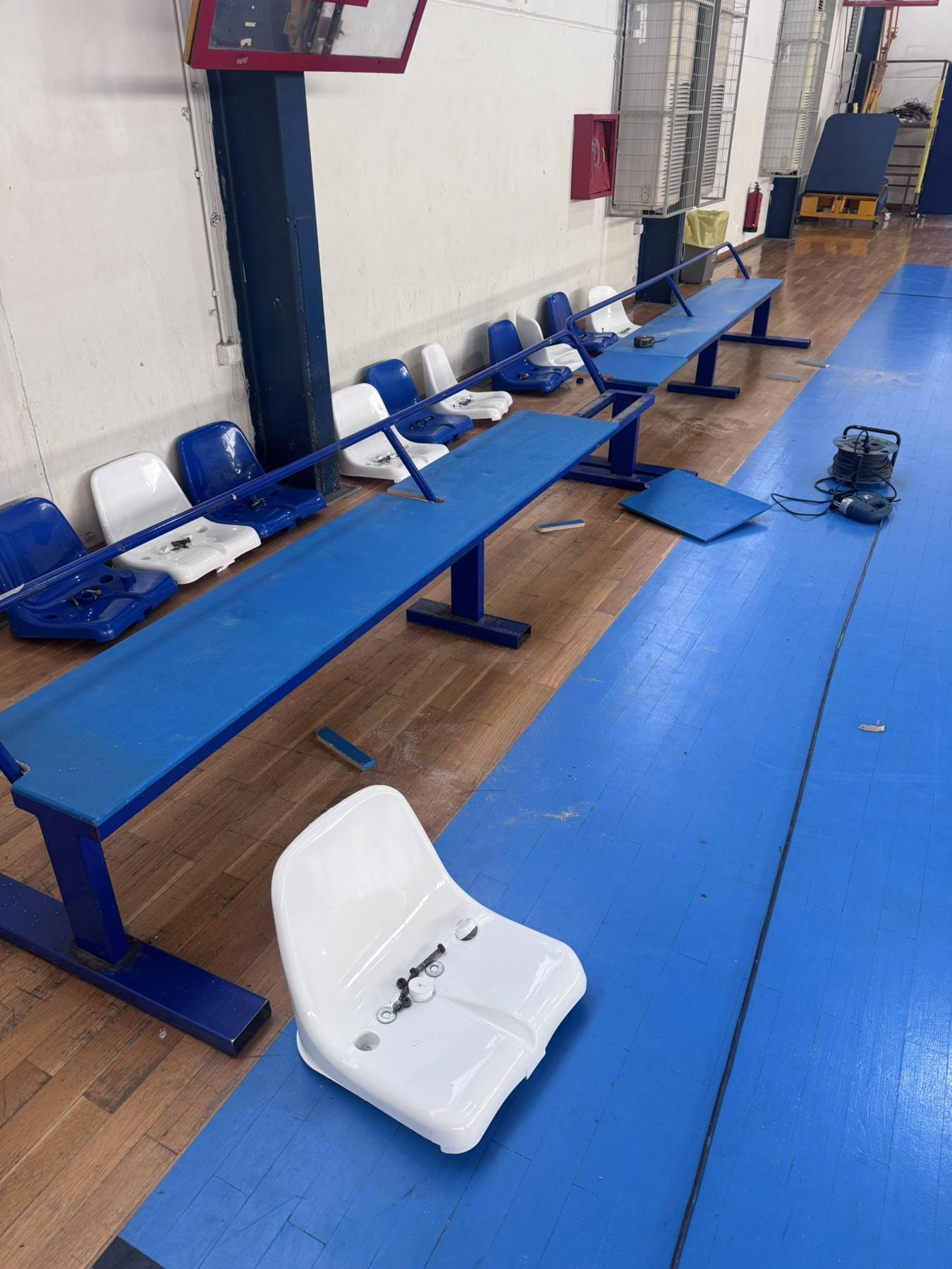 Τοποθέτηση ξύλινων τάβλων στους πάγκους των αθλητών και των προπονητών, προκειμένου να ενισχυθεί η σταθερότητα και η αντοχή τους, παρέχοντας μεγαλύτερη ασφάλεια και άνεση στους χρήστες του γηπέδου.