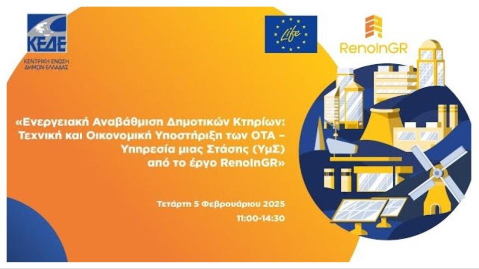 Αναφορικά με το έργο RenoInGR “Integrated services for clean energy transition in buildings and businesses”, είναι 4ετούς διάρκειας έργο LIFE και χρηματοδοτείται κατά το 95% από πόρους του προγράμματος.