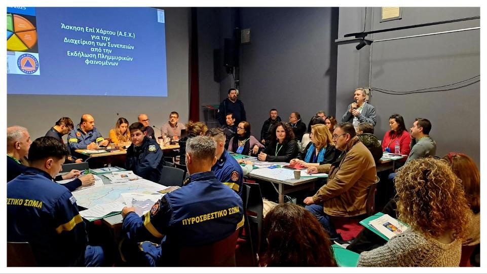Όλα τα ενδεχόμενα σενάρια αντιμετώπισης εκτάκτων αναγκών από φυσικές καταστροφές, οι χρόνοι αντίδρασης και ο επιχειρησιακός σχεδιασμός εξετάστηκαν στην άσκκηση επί χάρτου που πραγματοποιήθηκε στο δημαρχείο Χαλανδρίου.