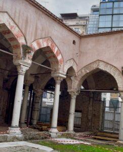 Σε εξέλιξη βρίσκονται εργασίες προληπτικής στερέωσης του εσωτερικού διακόσμου του τεμένους από εξειδικευμένα συνεργεία συντηρητών, καθώς και η μερική απόσπαση των μαρμάρινων πλακών του δαπέδου, στον αίθριο χώρο. Στις εξωτερικές τοιχοποιίες του μνημείου πραγματοποιούνται εργασίες καθαίρεσης σαθρών αρμολογημάτων και επιχρισμάτων και εκτέλεση δειγμάτων νέων συμβατών κονιαμάτων.