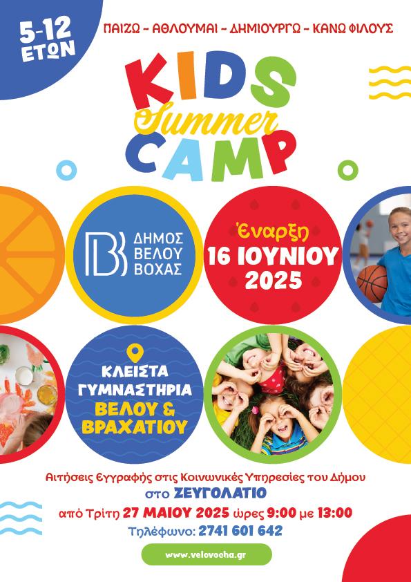 Ο Δήμος διοργανώνει, λοιπόν, Κids Summer Camp για παιδιά 5-12 ετών. Θα ξεκινήσει στις 16 Ιουνίου και θα πραγματοποιηθεί στα κλειστά Γυμναστήρια Βέλου & Βραχατίου.