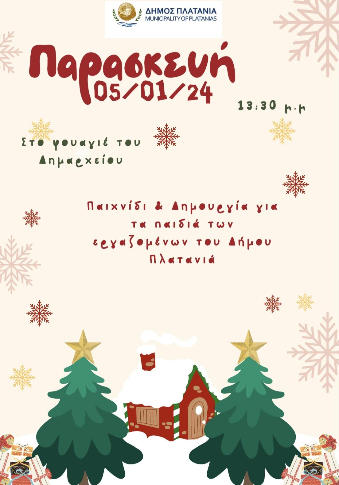 Συνεχίζονται οι εορταστικές εκδηλώσεις Χριστουγέννων-Πρωτοχρονιάς 2023-2024 στον Δήμο Πλατανιά