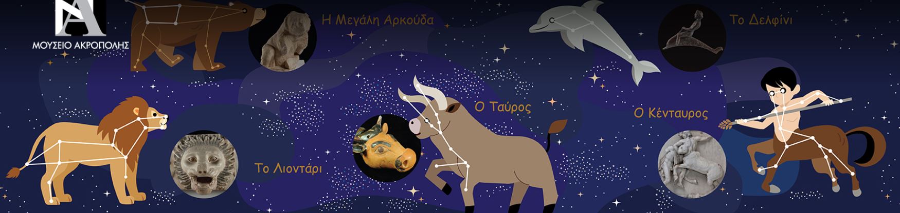 Η Παιδική Γωνιά του Μουσείου γεμίζει με τη λάμψη των αστεριών! Έχει ντυθεί γιορτινά και σας περιμένει σε ένα ταξίδι στα μονοπάτια του έναστρου ουρανού. Οι αρχαιολόγοι του Μουσείου αφηγούνται, με τη συνοδεία μελωδικών ήχων, μύθους για θεούς, ήρωες και ξεχωριστούς ανθρώπους που μεταμορφώθηκαν σε φωτεινά σημεία στον ουρανό. Θα ακούσετε τις φανταστικές ιστορίες από τον μαγικό κόσμο των αστερισμών, να τραγουδήσετε, θα ζωγραφίσετε τα δικά σας αστέρια και θα κάνεμε τις πιο όμορφες ευχές!