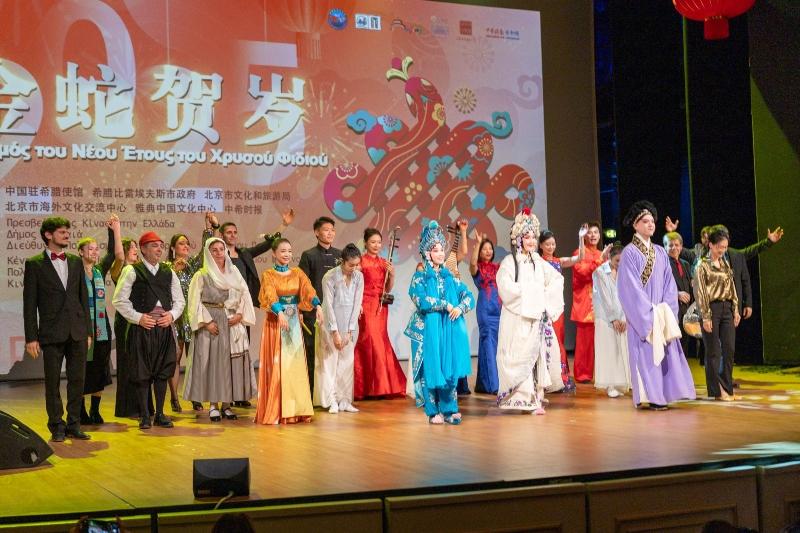 Οι παρευρισκόμενοι παρακολούθησαν ένα εντυπωσιακό θέαμα με ξεχωριστά πολιτιστικά και καλλιτεχνικά δρώμενα της κινεζικής κουλτούρας, θεατρική παράσταση, παραδοσιακούς και μοντέρνους χορούς, μουσική με παραδοσιακά όργανα από ομάδα Κινέζων και Ελλήνων μουσικών, όπερα και επιδείξεις πολεμικών τεχνών.