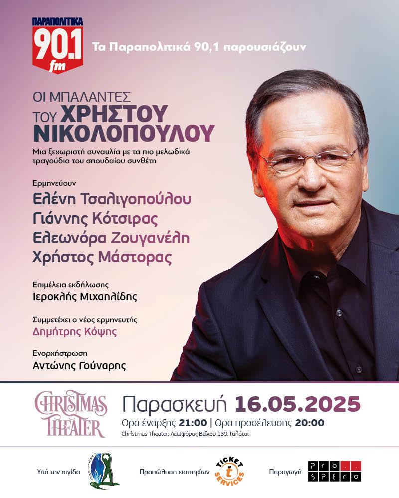 Τα Παραπολιτικά 90,1 παρουσιάζουν: “Οι μπαλάντες του Χρήστου Νικολόπουλου”, την Παρασκευή 16 Μαΐου στο Christmas Theater