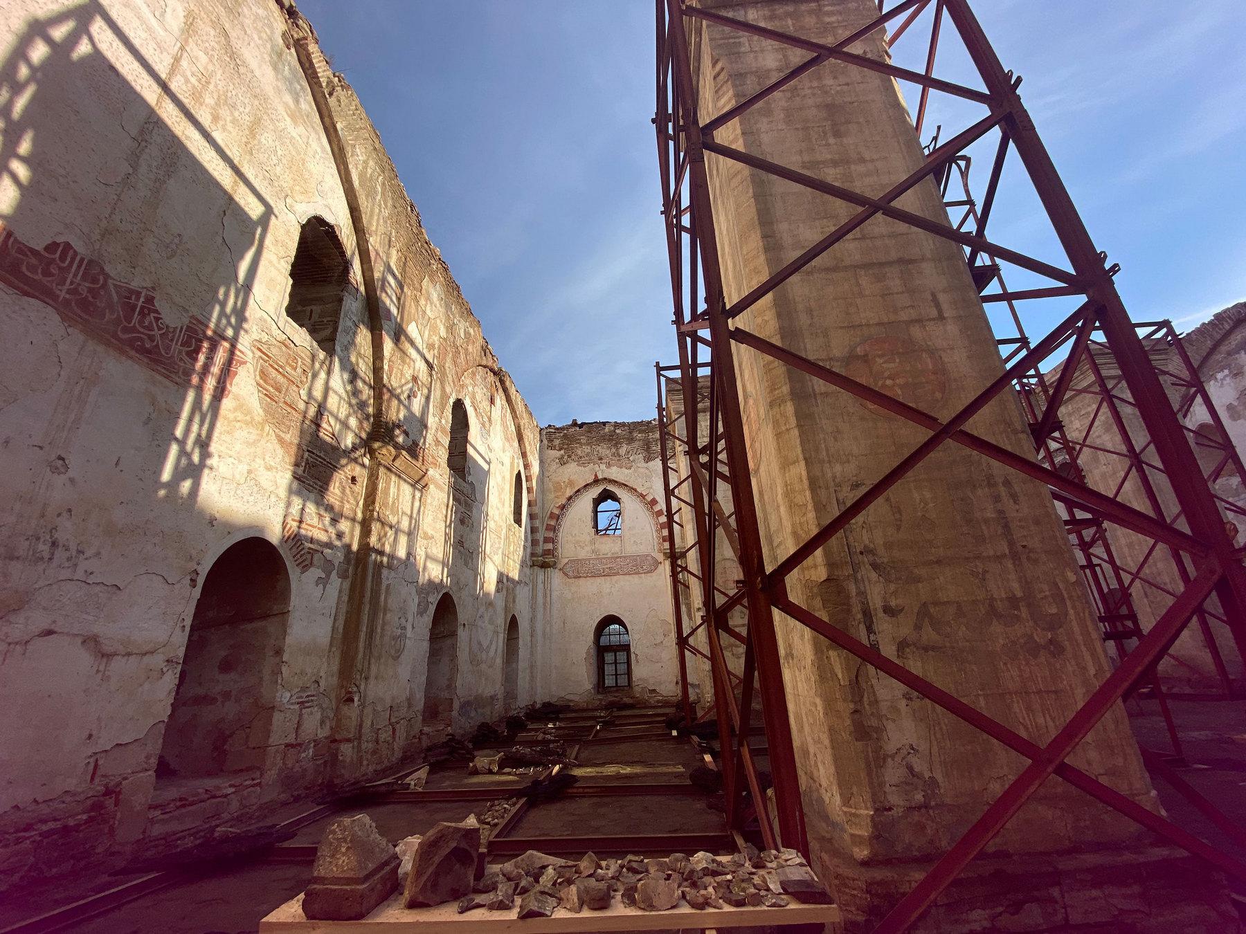 Με εντατικούς ρυθμούς προχωρούν οι εργασίες προστασίας, συντήρησης, αποκατάστασης και ανάδειξης του Τεμένους Βαγιαζήτ. Έχει ολοκληρωθεί η εγκατάσταση του ικριώματος του μιναρέ και τα δάπεδα εργασίας του. Έχει ολοκληρωθεί η εγκατάσταση της ενιαίας εσωτερικής ικριωματικής πλατφόρμας εργασίας, πάνω από την στάθμη των πεσσών για τις εργασίες τοποθέτησης της νέας στέγης. Έχει ολοκληρωθεί η καταβίβαση της ανώτατης πρώτης σειράς των λίθων και από τους τέσσερις πεσσούς, μετά από ακριβή αποτύπωσή τους και μετρήσεις ενός εκάστου με υπερήχους για την διαπίστωση της κατάστασης διατήρησής τους. Λόγω της διαπιστωμένης ανάγκης αντικατάστασής τους (άνωθεν αυτών εδράζονται οι στρωτήρες της στέγης) και με κριτήριο την επανατοποθέτηση όσων παλιών διατηρούνται σε καλή κατάσταση, η εξόρυξη και κοπή των νέων λίθων βρίσκεται σε εξέλιξη. Βρίσκεται σε εξέλιξη η αναδόμηση τμημάτων της εσωτερικής παρειάς της στέψης των τοιχοποιιών με νέους συμπαγείς οπτόπλινθους για την δημιουργία της επιφάνειας έδρασης των ξύλων των πεσσών. Στην στέψη των τοιχοποιιών περιμετρικά έχουν τοποθετηθεί οι διαμήκεις ξύλινοι στρωτήρες και γίνονται οι διατρήσεις για την κατακόρυφη σύνδεσή τους με την τοιχοποιία. Όλοι οι εγκάρσιοι στρωτήρες έχουν τοποθετηθεί αφού προηγήθηκε η υποκείμενη νέα κατασκευή ενιαίας επιφάνειας έδρασης από συμπαγείς οπτόπλινθους.