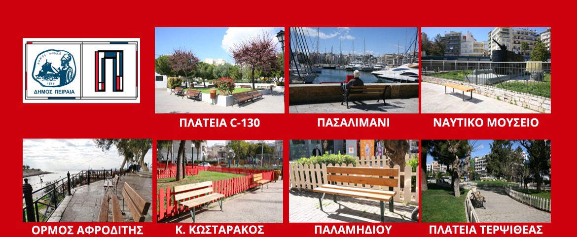 Ναυτικό Μουσείο Ελλάδος, πλατεία Φρεαττύδος, Πασαλιμάνι, Πειραϊκή, πλατείες «Ν. Λεγάκη», «Κ. Κωσταράκος», «Π. Βλαχάκου», πεζόδρομος Παλαμηδίου, περιοχή Αγίου Βασιλείου, αύλειοι χώροι Ιερών Ναών, είναι ορισμένα μόνο σημεία που μπήκαν τα νέα παγκάκια με μέριμνα της Διεύθυνσης Περιβάλλοντος και Πρασίνου του Δήμου.