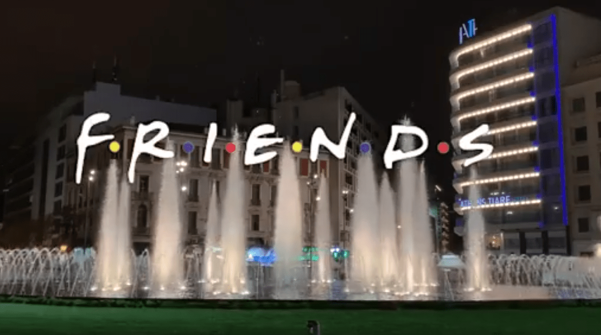 Ειδικότερα πρόκειται για ένα «πειραγμένο» intro της σειράς όπου Ρέιτσελ, Μόνικα, Φοίβη, Τζόι, Τσάντλερ και Ρος αφήνουν την Νέα Υόρκη και έρχονται στην Ομόνοια, και φυσικά πρωταγωνιστικό ρόλο διαδραματίζει το νέο συντριβάνι.