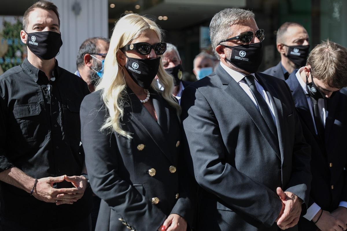 Συντετριμμένος ο περιφερειάρχης Αττικής έφτασε στη Μητρόπολη Αμαρουσίου, όπου είπε το τελευταίο αντίο στην πολυαγαπημένη του μητέρα Πόπη, συνοδευόμενος από τη σύζυγό του Μαρίνα και τον μοναχογιό τους Αλέξανδρο.