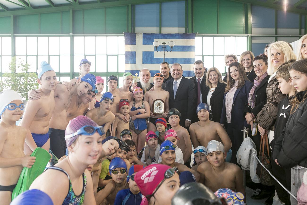 Το δημοτικό κολυμβητήριο στο Πανόραμα γέμισε από κόσμο και κολυμβητές που τήρησαν το έθιμο των Θεοφανείων και βούτηξαν για να πιάσουν τον Σταυρό. Μεγάλη η συμμετοχή, γι’ αυτό και οι Ιερείς έριξαν 2 Σταυρούς στο νερό.