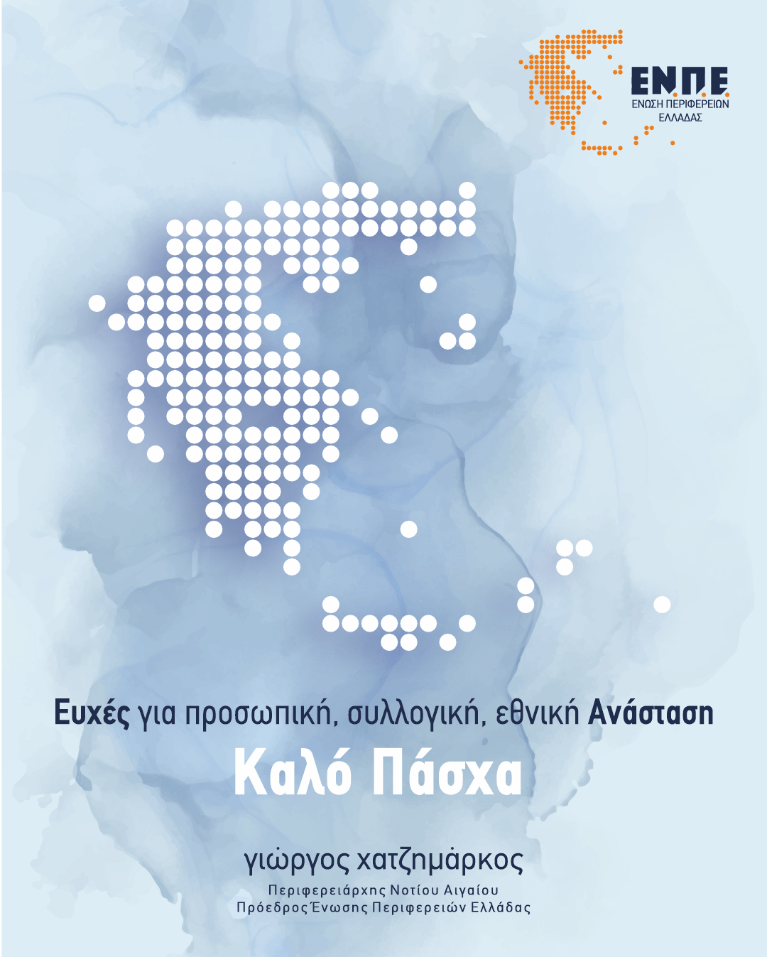 Ευχές και το δικό του μήνυμα για το Πάσχα έστειλε ο Περιφερειάρχης Νοτίου Αιγαίου και Πρόεδρος της ΕΝΠΕ Γιώργος Χατζημάρκος. Ο κ. Χατζημάρκος έγραψε συγκεκριμένα: