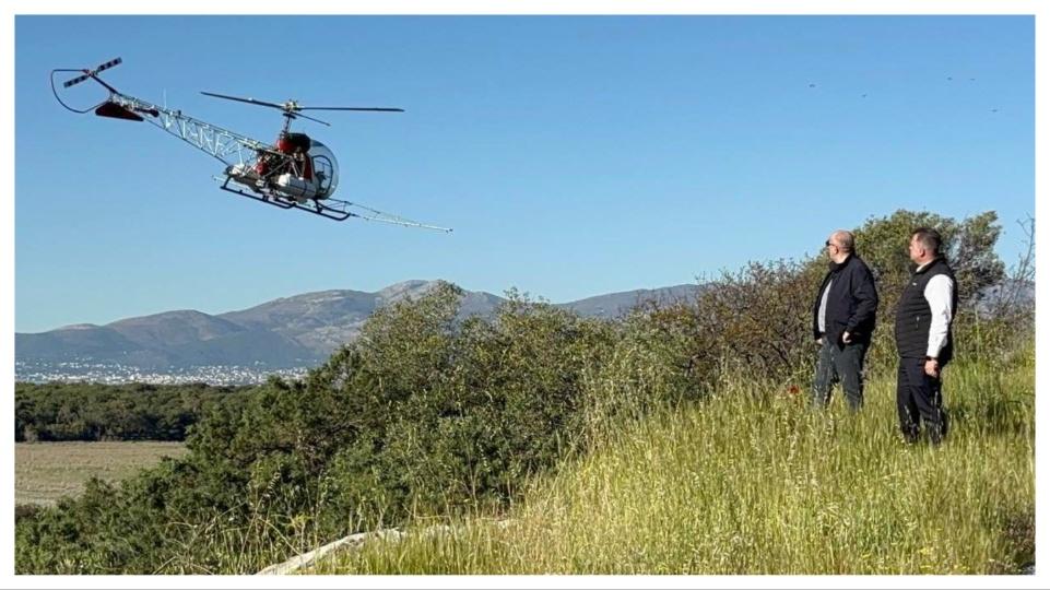 Στο πλαίσιο υλοποίησης του προγράμματος, στο πεδίο επιχείρησε ψεκαστικό ελικόπτερο με χρήση βιολογικού σκευάσματος, εγκεκριμένου για χρήση σε οικολογικά προστατευόμενες περιοχές, καλύπτοντας μία έκταση περίπου 4.000 στρεμμάτων σε σημεία όπου δεν είναι δυνατή η πρόσβαση επίγειων συνεργείων, βάσει της ειδικής χαρτογράφησης και καταγραφής εστιών.