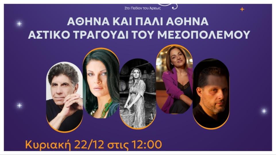 Ο Γιάννης Μπέζος, η Τάνια Τρύπη, η Βιολέτα Ίκαρη, η Ελένη Καρακάση και ο Μπάμπης Βελισσάριος, με τις μοναδικές φωνές και την ερμηνευτική τους δύναμη, ζωντανεύουν την ιστορία της Αθήνας στις δεκαετίες του ’30 και ’40, μέσα από διαχρονικά τραγούδια με την υπογραφή των μεγαλύτερων Ελλήνων συνθετών.
