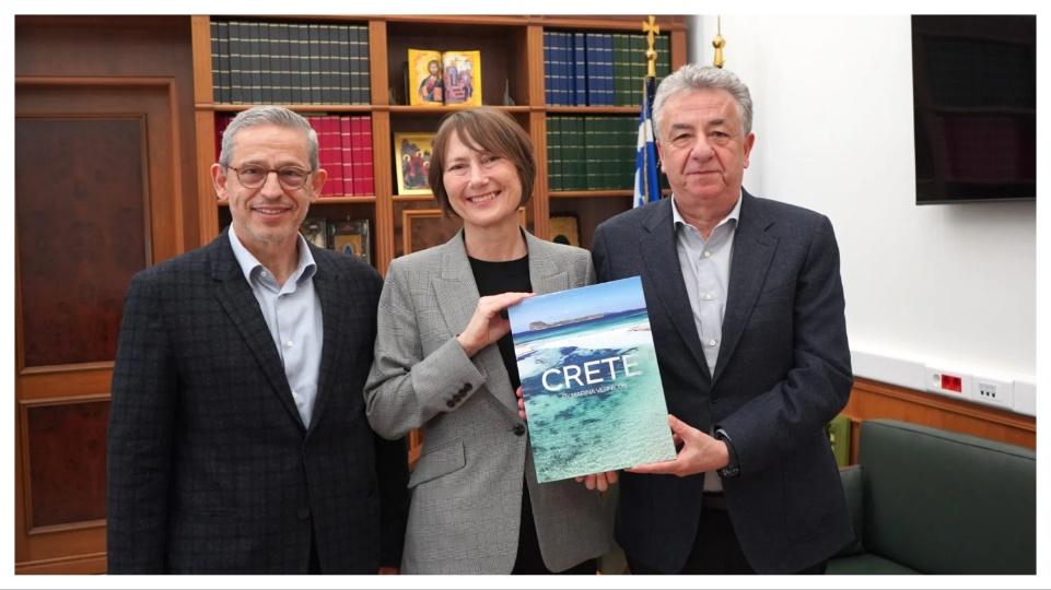 Η Πρέσβης, εξέφρασε στον Περιφερειάρχη την αγάπη της και τον θαυμασμό της για την Κρήτη, τον πολιτισμό της, την φύση και το κλίμα της, τον διατροφικό της πλούτο, τονίζοντας ότι οι συμπατριώτες της που επιλέγουν την Κρήτη για διακοπές δεν έρχονται μόνο μια φορά αλλά επαναλαμβανόμενα.