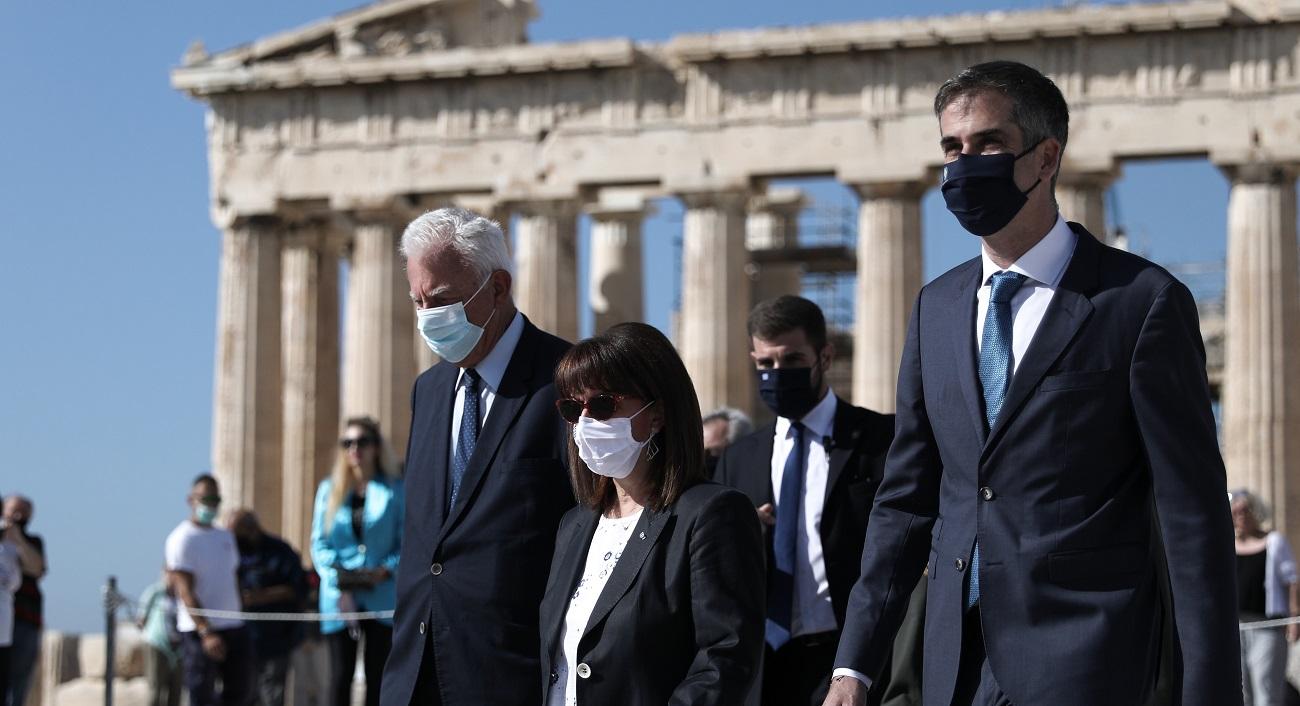 Στον ιερό βράχο της Ακρόπολης, πραγματοποιήθηκε η τελετή το πρωί της Δευτέρας, παρουσία της Προέδρου της Δημοκρατίας Κατερίνας Σακελλαροπούλου, ενώ χαιρετισμό απηύθυνε εκ μέρους της κυβέρνησης ο Αντιπρόεδρος Παναγιώτης Πικραμένος.