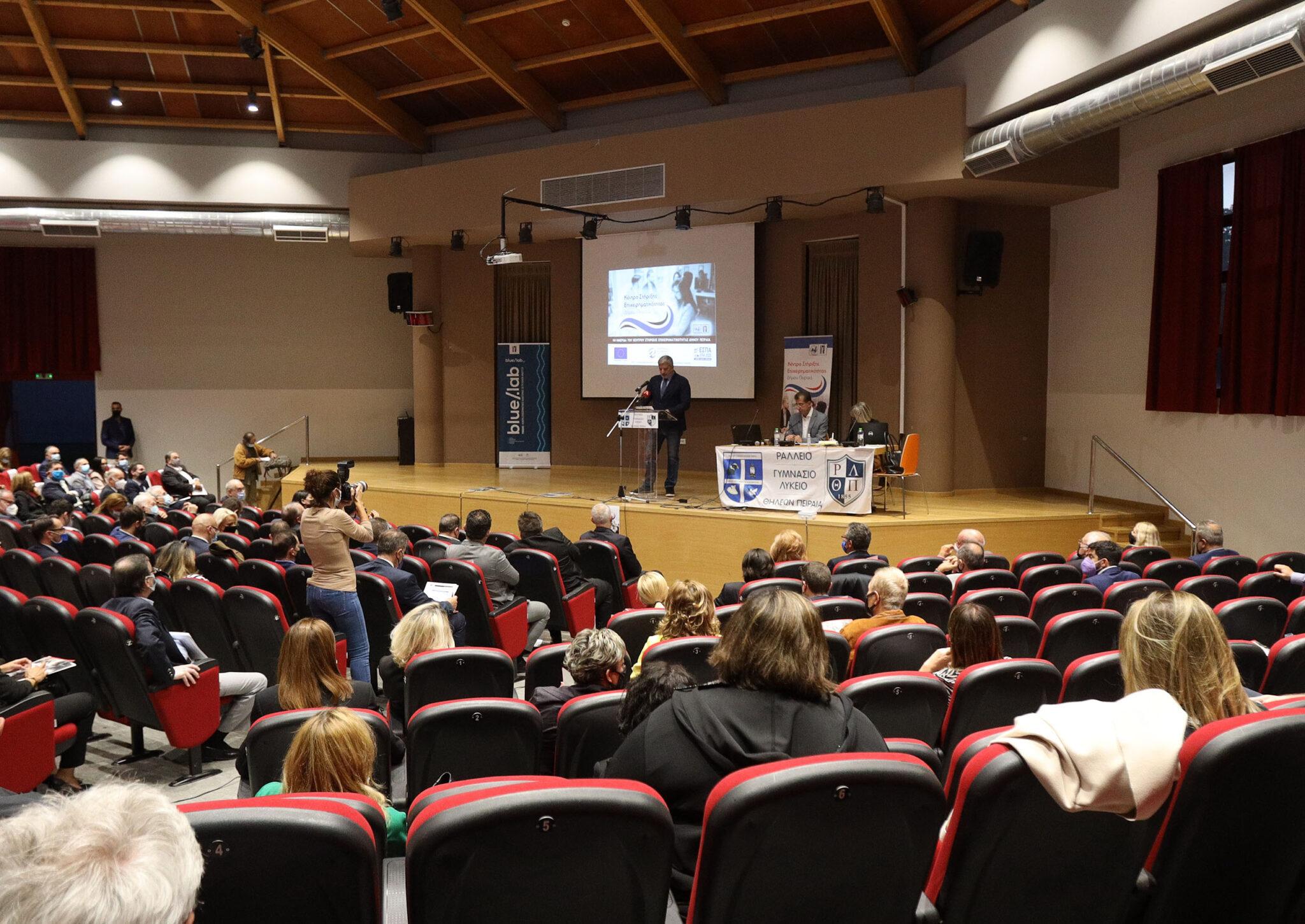 Η ημερίδα ξεκίνησε με ομιλία του Δημάρχου Πειραιά, Γιάννη Μώραλη, ακολούθησε η τοποθέτηση του Περιφερειάρχη Αττικής, Γιώργου Πατούλη και χαιρετισμός της Αντιπεριφερειάρχη Πειραιώς, Σταυρούλας Αντωνάκου. Στη σημασία της ανάπτυξης δράσεων στήριξης επιχειρηματικότητας αναφέρθηκε ο Υπουργός Ανάπτυξης, Άδωνις Γεωργιάδης, ενώ ο Υφυπουργός Ναυτιλίας, Κώστας Κατσαφάδος επικεντρώθηκε στην ομιλία του στη Γαλάζια Ανάπτυξη και την Κυκλική Οικονομία.