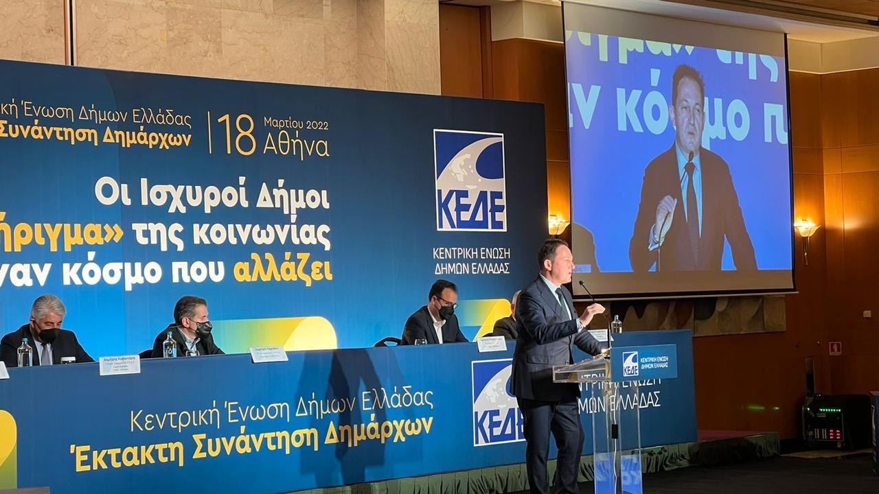 «Βρισκόμαστε εν μέσω μίας πολύ κρίσιμης συγκυρίας. Βιώνουμε μια κατάσταση που δεν έχει προηγούμενο στη μεταπολεμική Ευρώπη. Και σε αυτό το πλαίσιο, έχει μεγάλη σημασία να δουν οι πολίτες ότι Κεντρική Κυβέρνηση και Τοπική Αυτοδιοίκηση προχωρούμε ενωμένοι, προκειμένου να αντιμετωπίσουμε τις μεγάλες προκλήσεις των καιρών», τόνισε ο Αναπληρωτής Υπουργός Εσωτερικών Στέλιος Πέτσας, στην ομιλία του στην Έκτακτη Συνάντηση Δημάρχων που συγκάλεσε η ΚΕΔΕ, με θέμα «Οι ισχυροί δήμοι “στήριγμα” της κοινωνίας σε έναν κόσμο που αλλάζει».