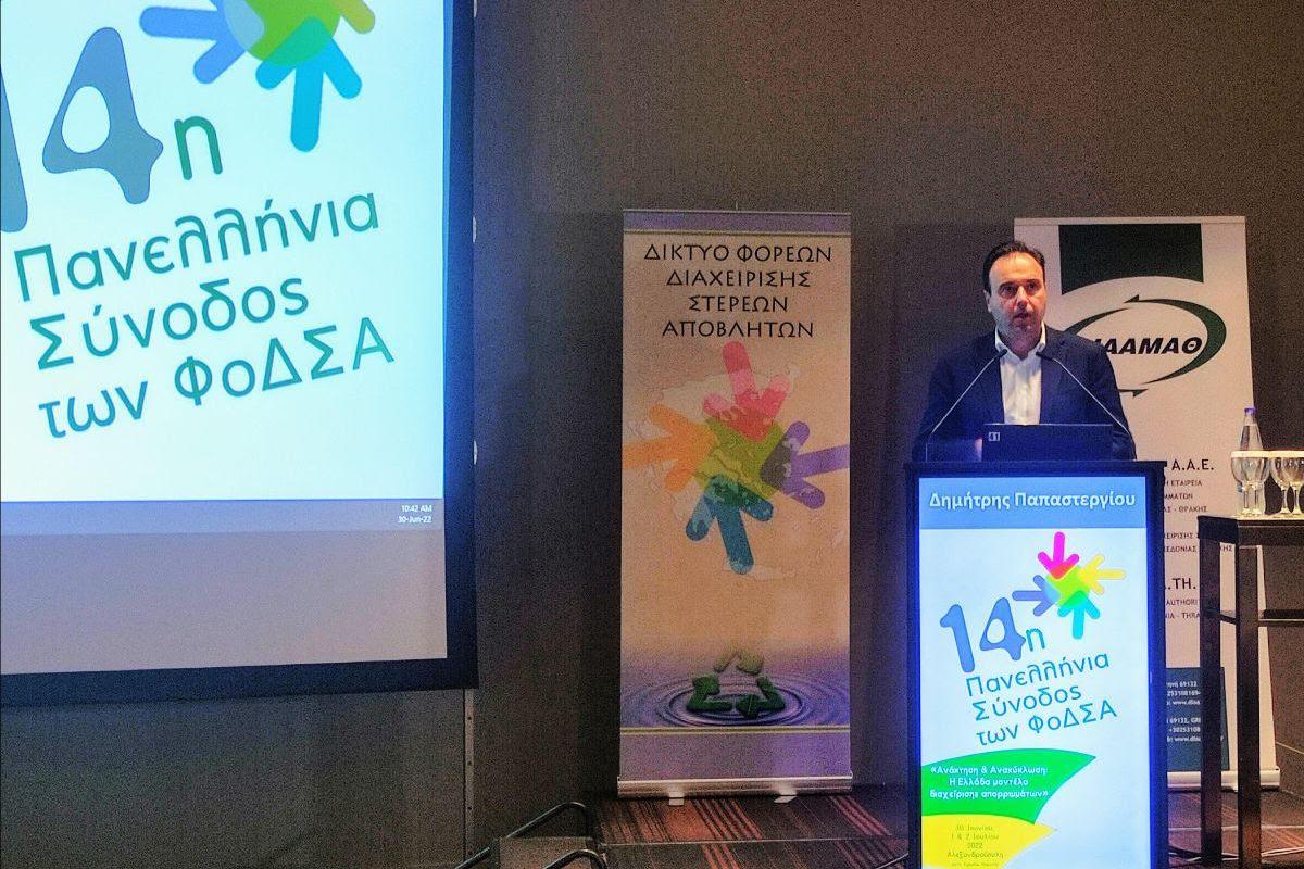 Στην 14η Πανελλήνια Σύνοδο των ΦοΔΣΑ μίλησε ο πρόεδρος της ΚΕΔΕ Δημήτρης Παπαστεργίου, σύνοδο που συνδιοργάνωσαν στην Αλεξανδρούπολη, το Δίκτυο των ΦοΔΣΑ και ο ΦοΔΣΑ της Περιφέρειας Κεντρικής Μακεδονίας – Θράκης και τελούσε υπό την αιγίδα της ΚΕΔΕ, με θέμα: «Ανάκτηση και Ανακύκλωση: Η Ελλάδα μοντέλο διαχείρισης απορριμμάτων», o πρόεδρος της ΚΕΔΕ σημείωσε ότι η ατζέντα της φετινής συνόδου είναι πολύ διαφορετική γιατί τα πράγματα αλλάζουν άρδην. «Κατά συνέπεια, είπε, θα πρέπει και εμείς να ανασυνταχθούμε σε σχέση με τη νέα παγκόσμια συγκυρία, η οποία μεταβάλλεται συνεχώς και έχει να κάνει κυρίως με τα ενεργειακά αλλά και με τα περιβαλλοντικά ζητήματα, την κυκλική οικονομία και την ουδετερότητα των πόλεών μας».